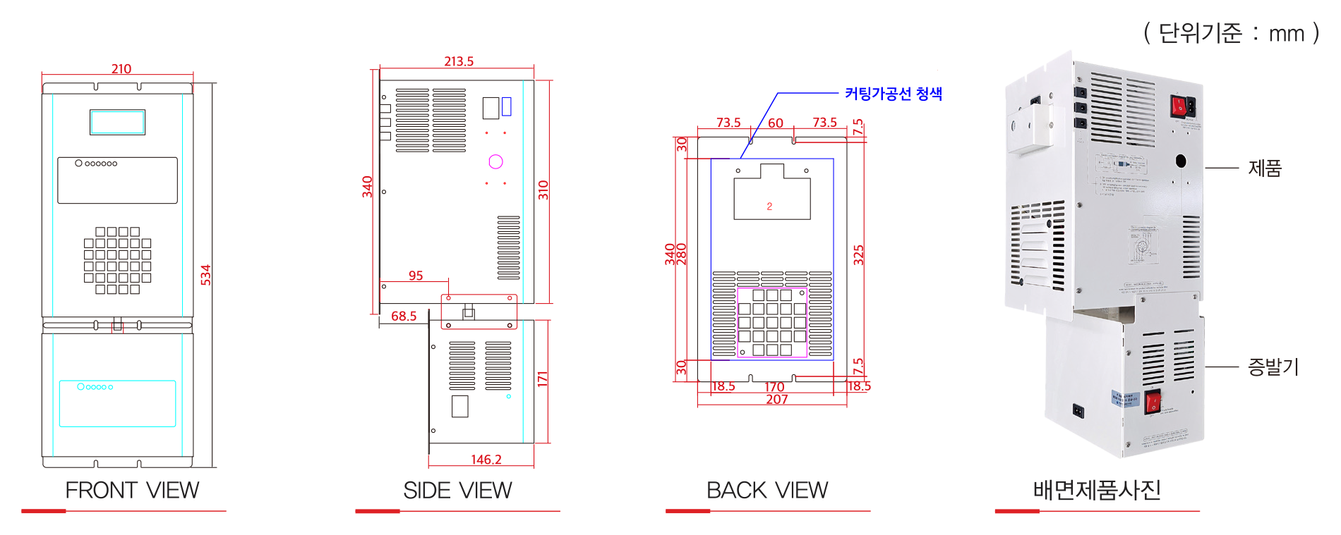 외관규격 534(H) X 210(W) X 213.5(D)